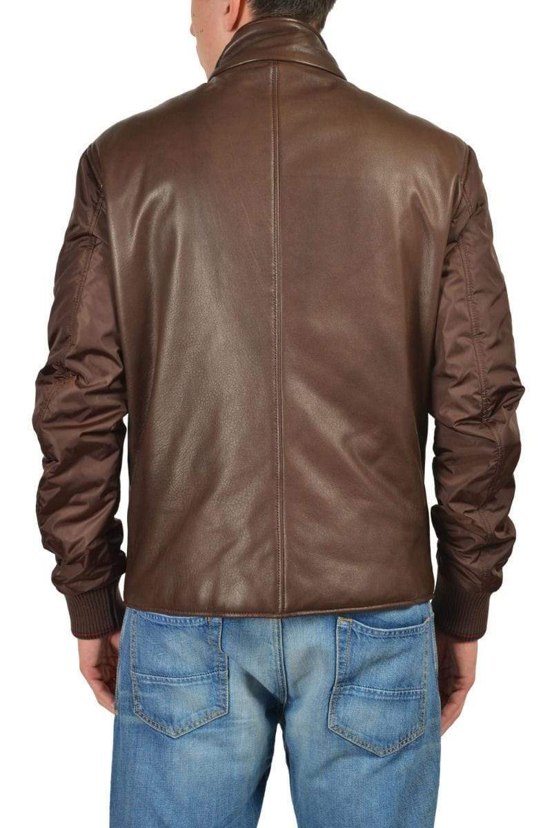 Handmade Men's Brown Leather Biker Zipper Pocket Fashion Jacket
