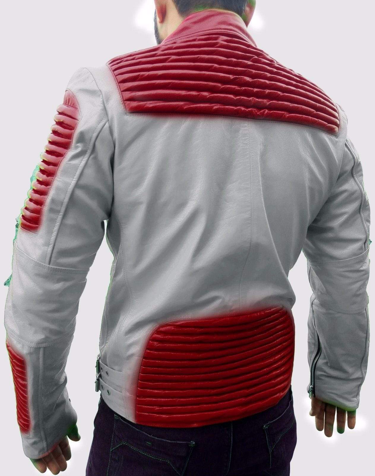 Handmade Men's Fashion White Red Pocket Leather Jacket