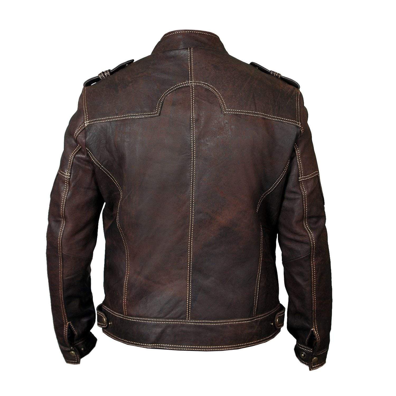 Handmade Men's Brown Fashion Leather Zipper Biker Jacket