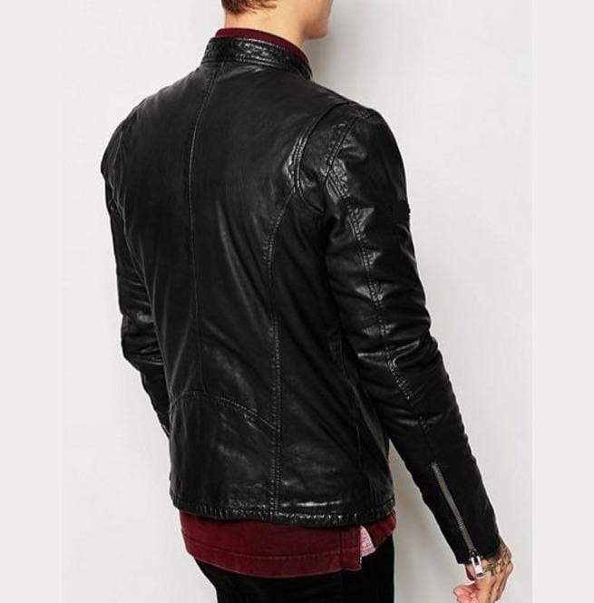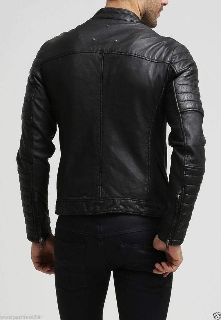 Handmade Men's Black Pockets Fashion Leather Zipper Biker Jacket