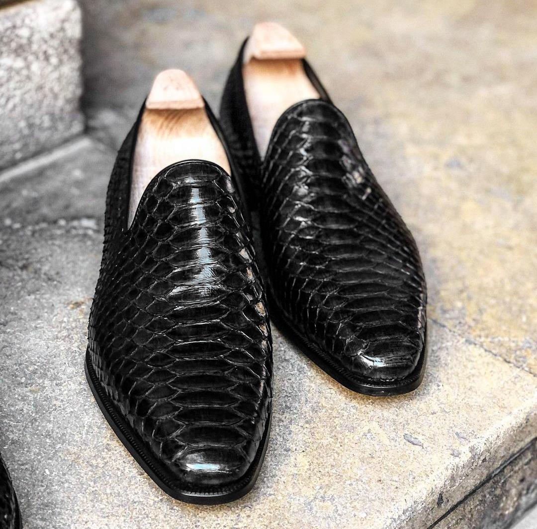 Black Python Leather Loafer Fashion Shoes For Men's Handmade Shoes