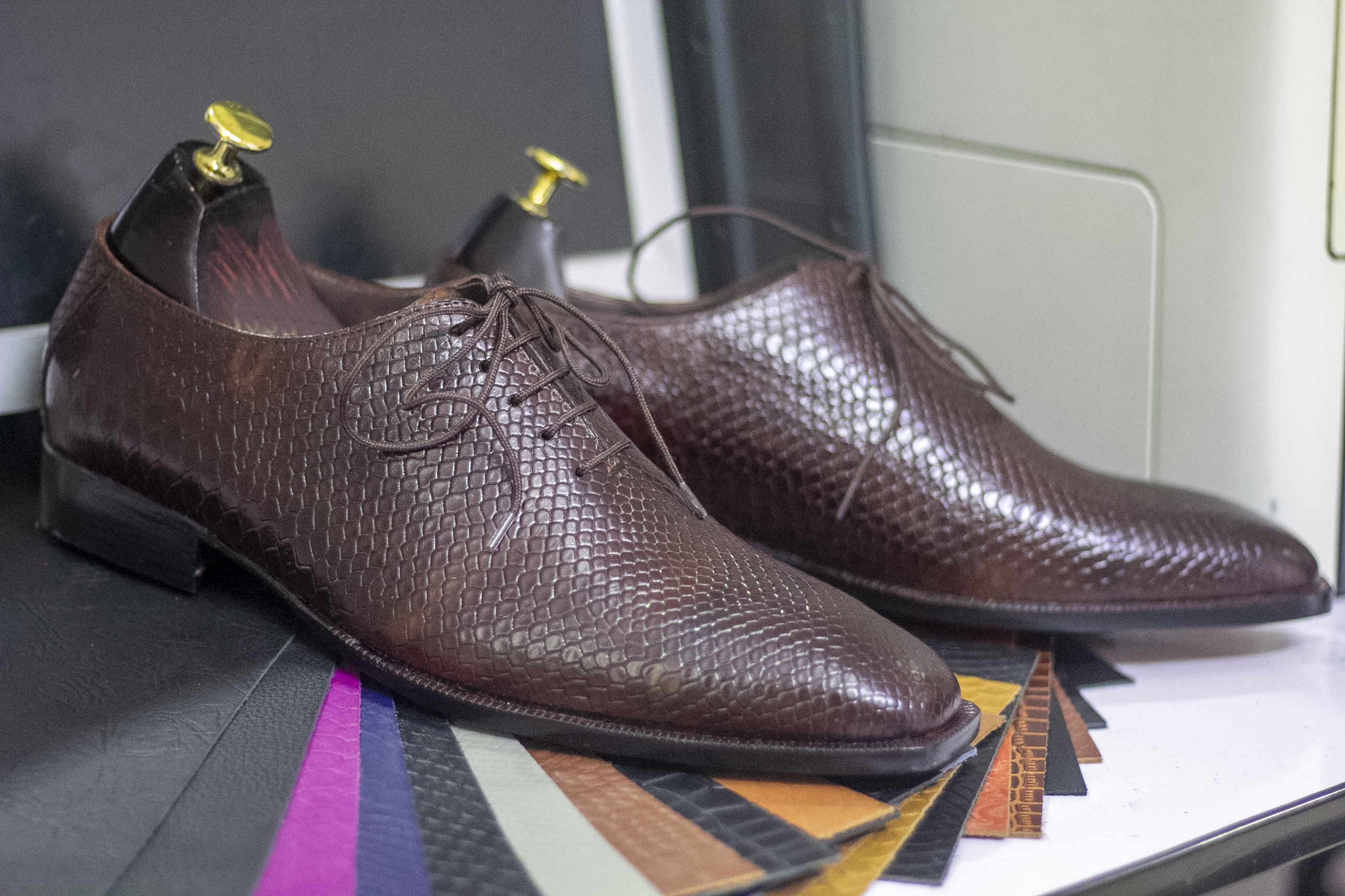 Handmade Brown Python Skin Texture Leather Lace Up Shoes