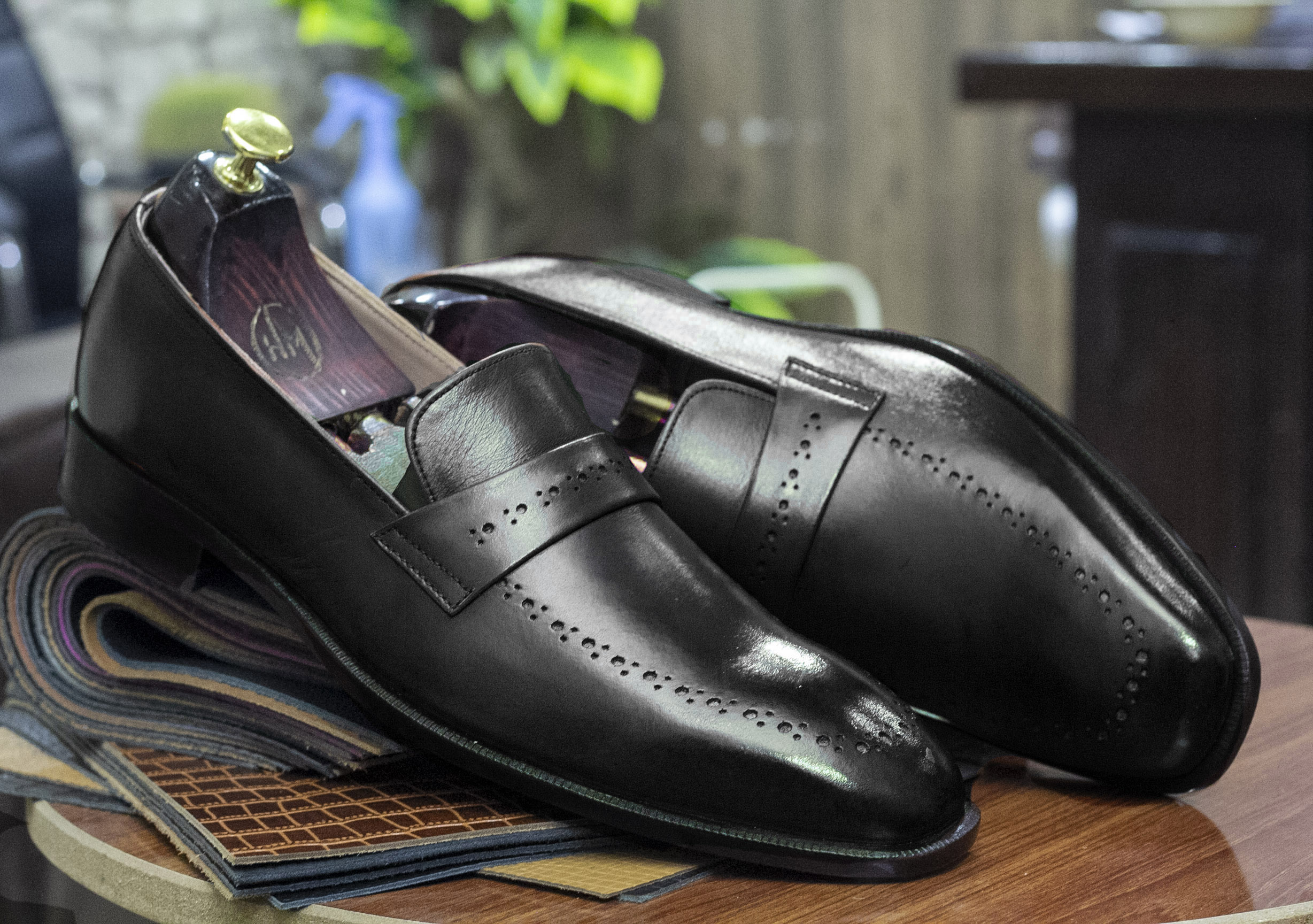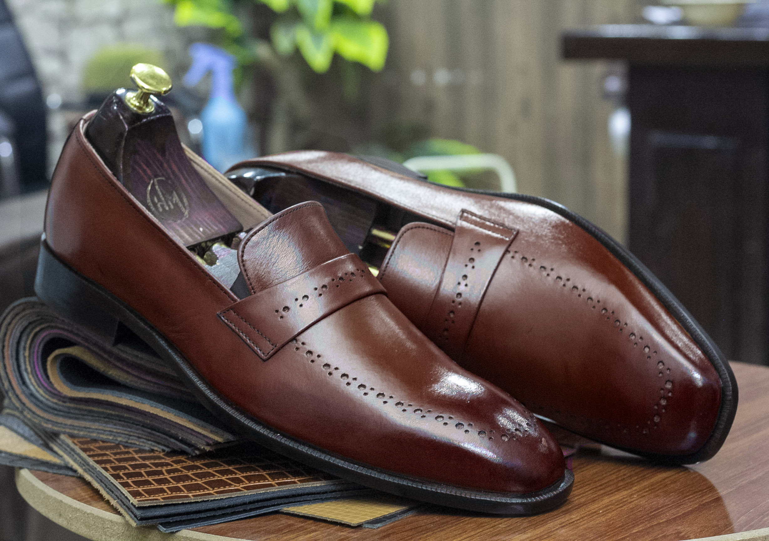 Bespoke Handmade Red Color Penny Loafer Style Slip On Moccasin Genuine Leather Party Wear Shoes for Men's