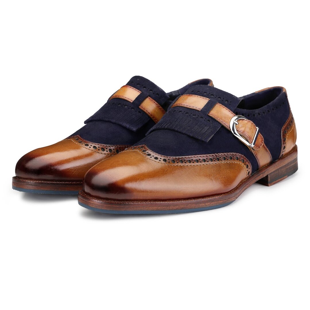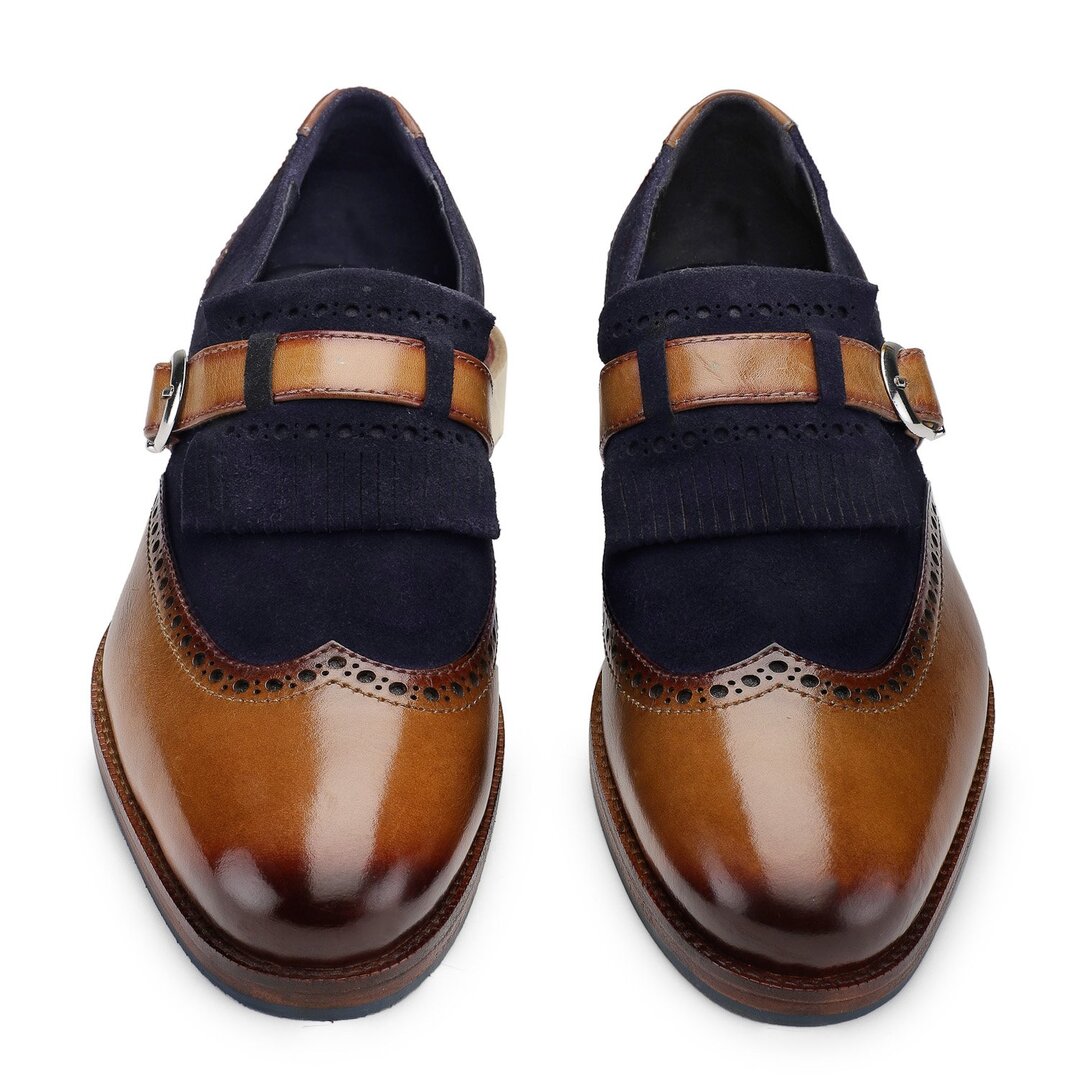 Handmade Two Tone Madrid Strap Leather Suede Shoes For Men's Wing Tip Style Shoes