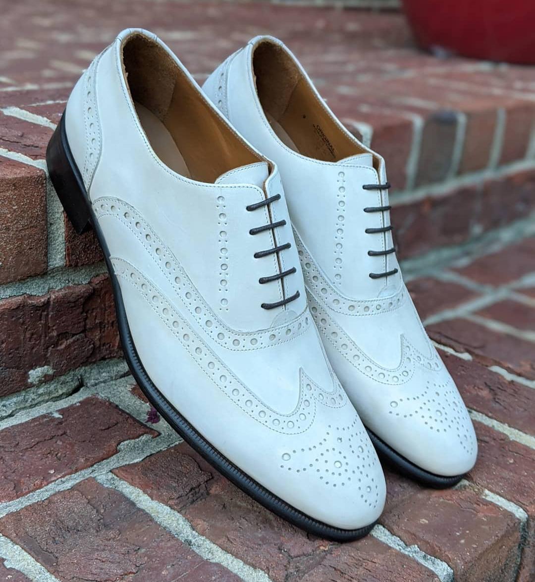 New Pure White Leather Spectator Lace Up Wing Tip Brogue Style Shoes For Men's