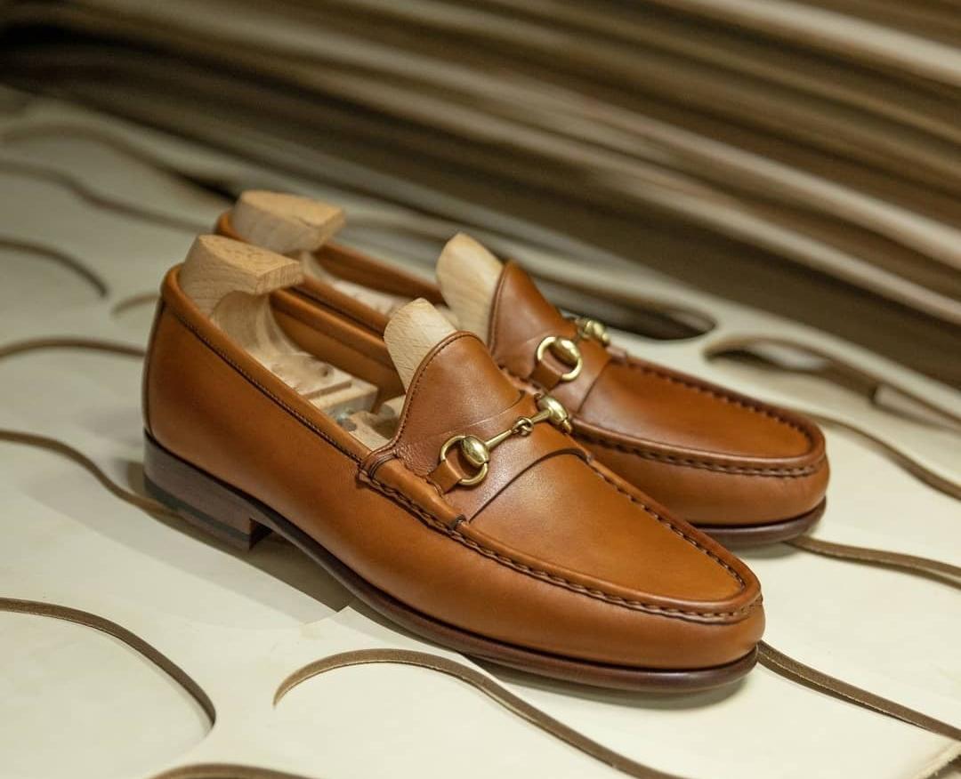 Pure Brown Handmade Horse Bit Style Loafer Formal Shoes For Men's