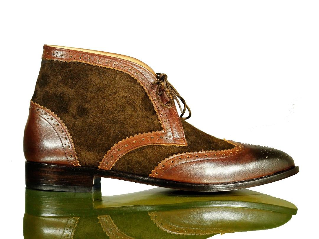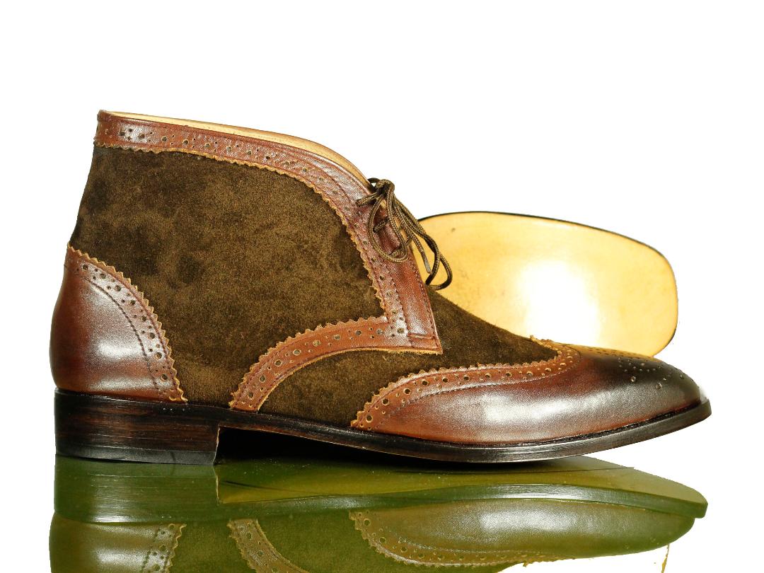 Hand Crafted Men's Casual Boot, Men's Brown Wing Leather Suede Boot