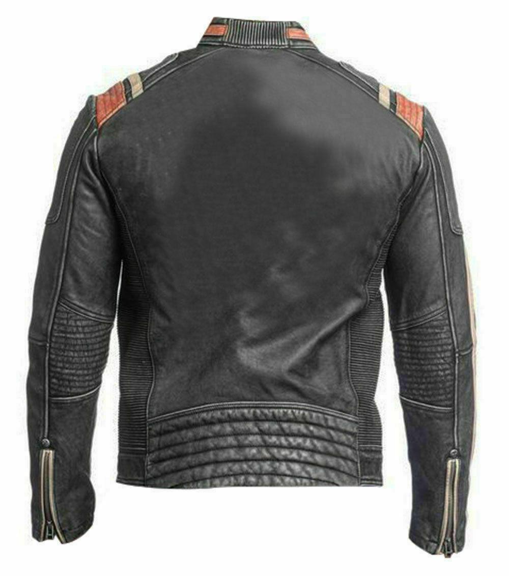 Men's Retro 3 Cap Racer Biker Vintage Motorcycle Distressed Moto Leather Jacket