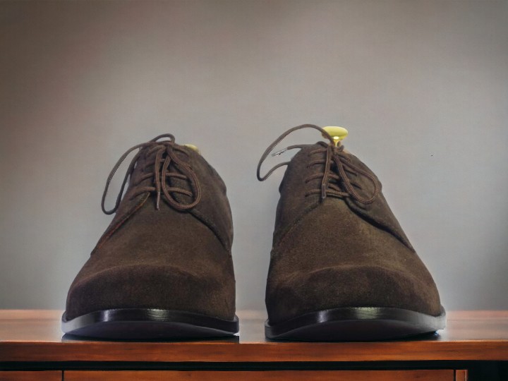Handmade Men's Chocolate Brown Suede Shoes ,Lace Up Dress Shoes