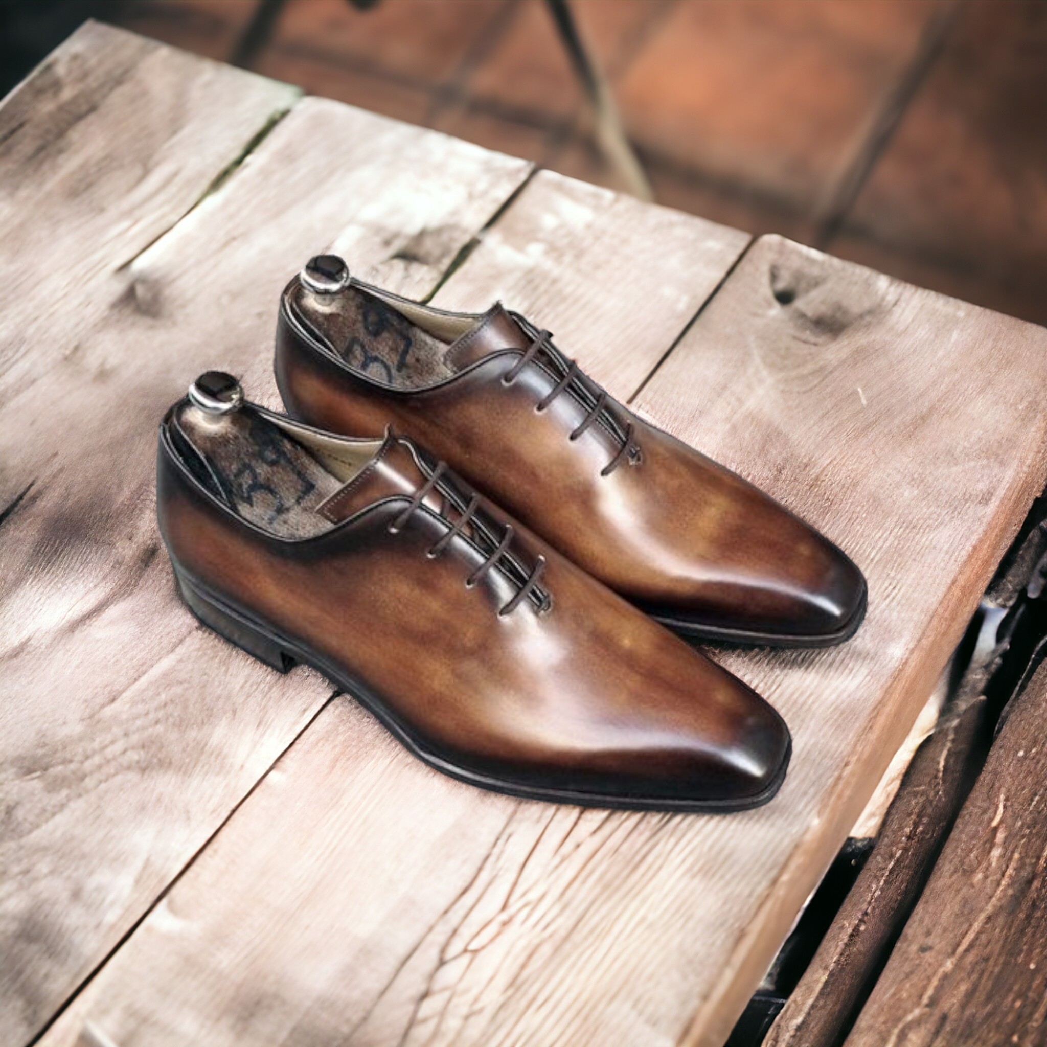 Handmade Men's Brown Two Tone Leather Shoes ,Lace Up Dress shoes