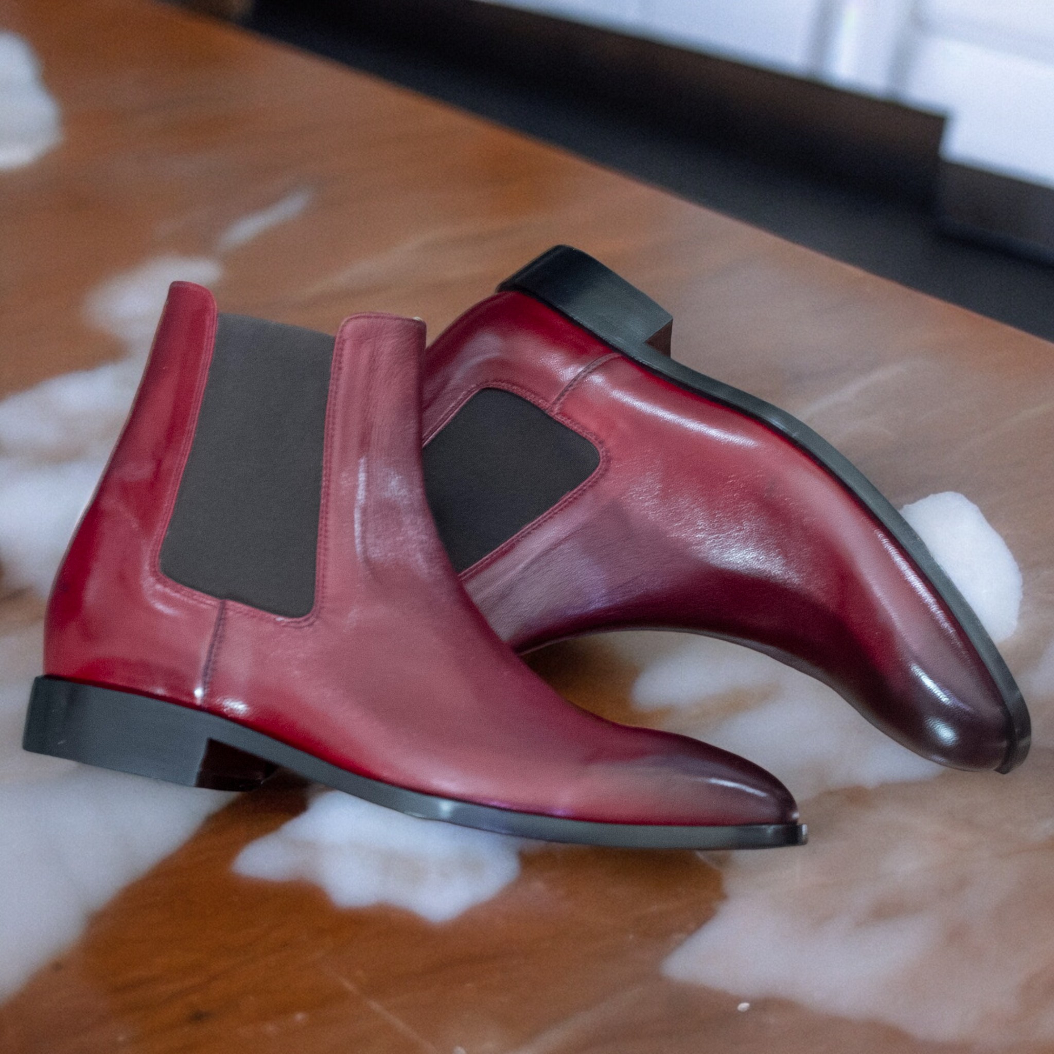 Handmade Men's Burgundy Leather Boot ,Chelsea Ankle High Boot