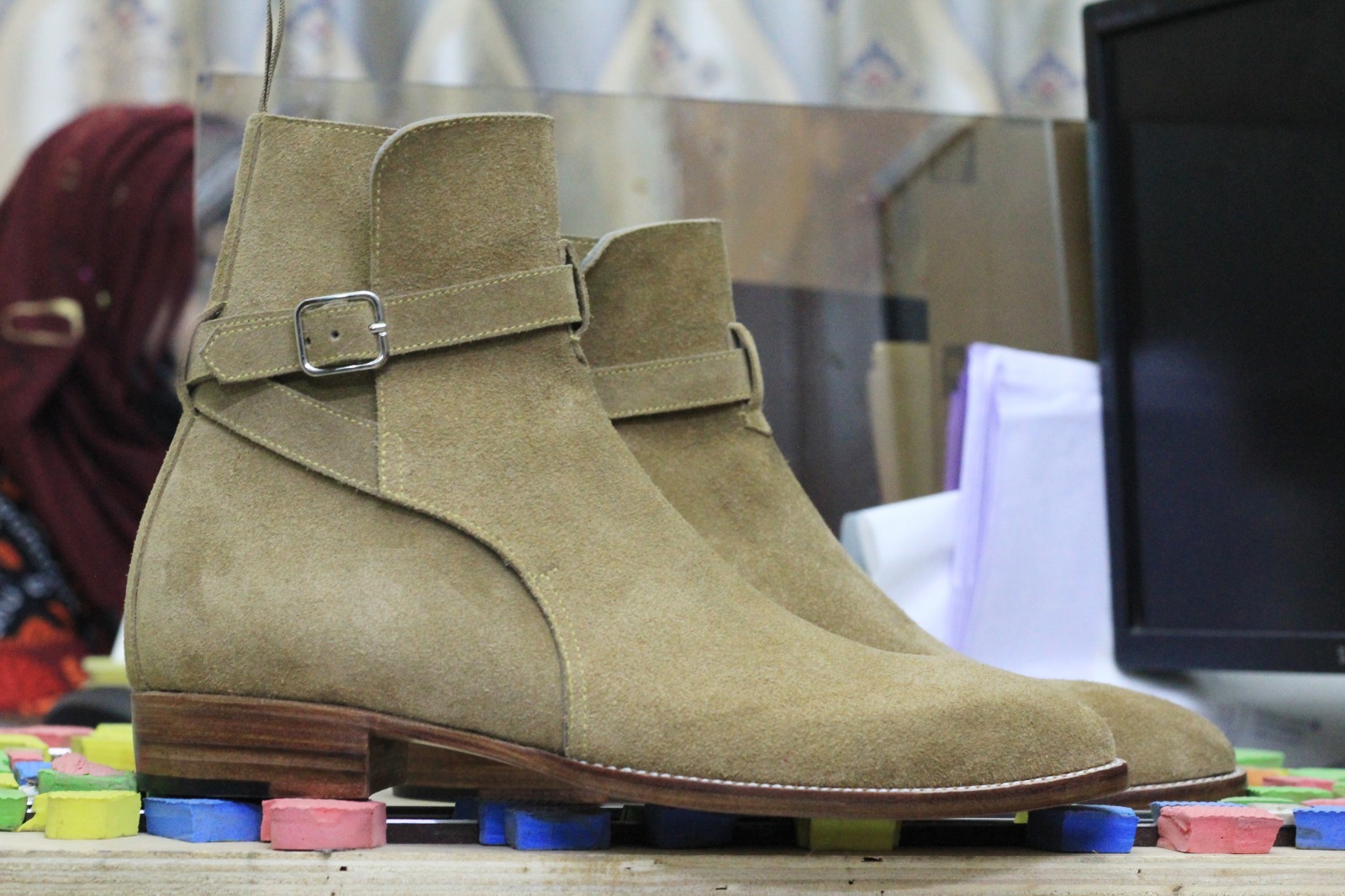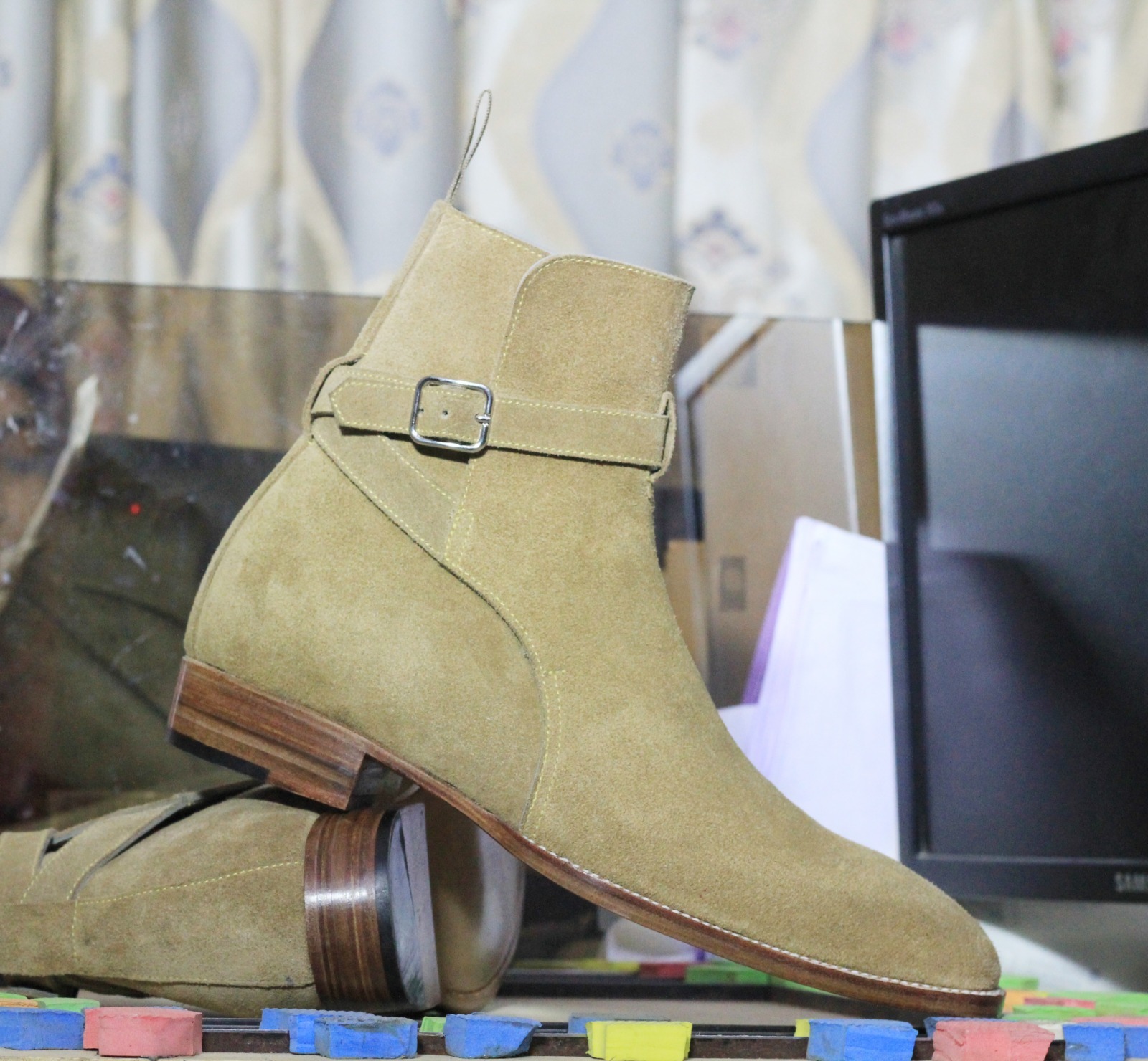 Handmade jodhpur Brown Ankle High Boot Men's Beige Suede Leather Boot .