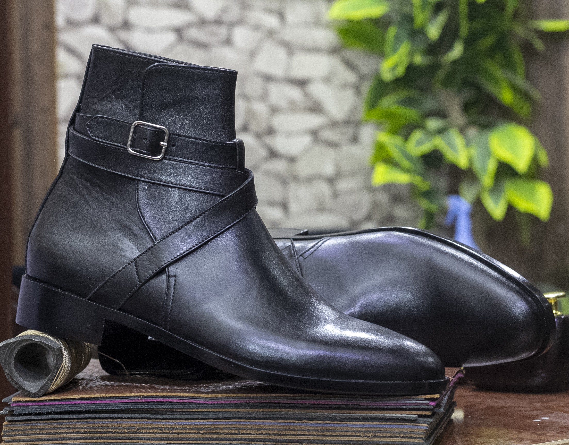 New Handmade Men"s Jodhpurs Leather Ankle Black High Boot"s