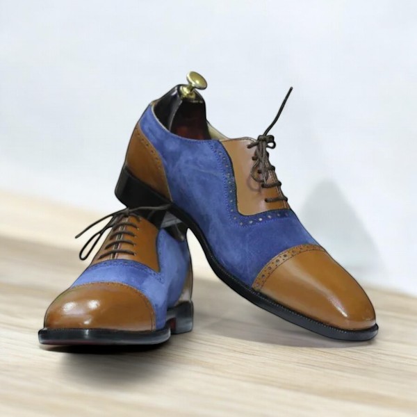 Handmade Cap Toe Lace-Up Shoes Two-Tone Leather Shoes for Men Bespoke